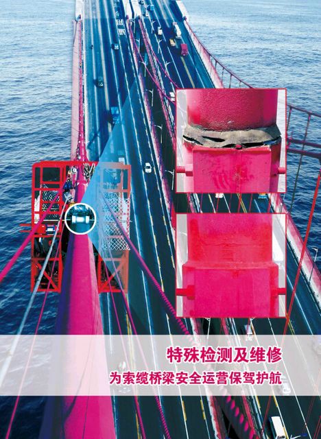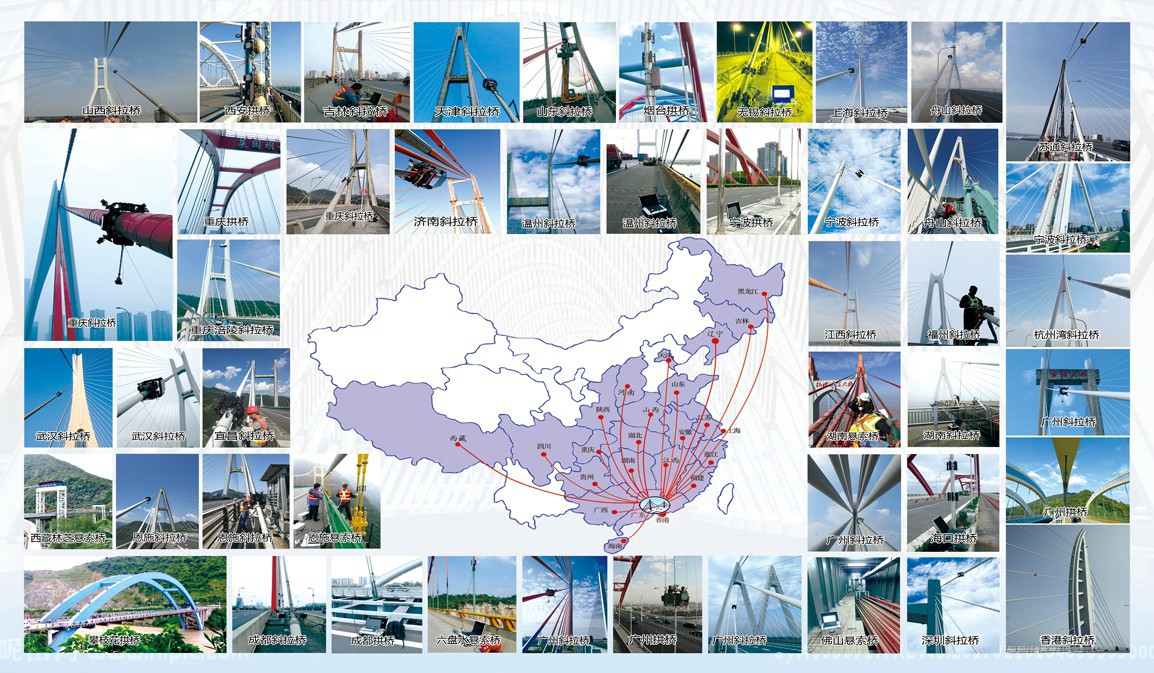 深圳市索桿橋梁工程檢測(cè)有限公司和廣州市開(kāi)博橋梁工程有限公司是集索體系橋梁檢測(cè)和施工、維修于一體的企業(yè)集團(tuán)。秉持“創(chuàng)新、領(lǐng)先、跨越”的經(jīng)營(yíng)理念,目前以橋梁索桿特殊檢測(cè)及維修為主要發(fā)展方向,逐步成為行業(yè)領(lǐng)先的多元化綜合性企業(yè)。 集團(tuán)公司不僅具備橋梁常規(guī)的檢測(cè)和靜動(dòng)載試驗(yàn)?zāi)芰Γ邆錁蛄核鳁U內(nèi)部銹蝕斷絲的無(wú)損檢測(cè)、索桿爬索機(jī)器人PE外觀(guān)檢測(cè)等國(guó)內(nèi)外領(lǐng)先的檢測(cè)技術(shù)和能力;不僅具備常規(guī)的橋梁維修和施工能力,更具備索桿PE修補(bǔ)及除濕、主纜開(kāi)裂修復(fù)等特殊維修技術(shù);并具備主塔轉(zhuǎn)體,索鞍吊裝,主梁吊裝,貓道架設(shè)等特殊施工技術(shù)?!?